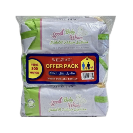 ويل زياد _ مناديل المبللة عرض التوفير العائلي 3 × 100 = 300 منديل