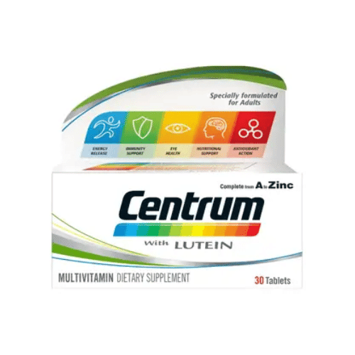 يحتوي سنترم مع لوتين على 24 عنصرًا غذائيًا رئيسيًا يدعم الرفاهية العامة للبالغين
