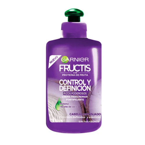 - تعمل تركيبة Fructis مع بروتين الفاكهة وزيت جوز الهند على تقوية الشعر وتوفير التغذية وتحديد المزيد من تجعيد الشعر وتقليل الحجم الزائد.