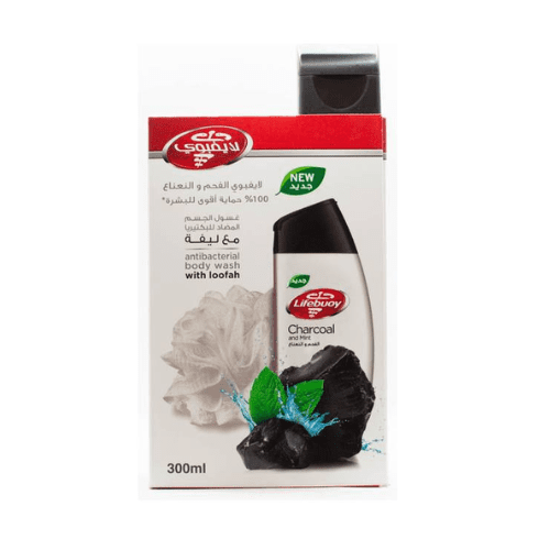 لايف بوي _ سائل استحمام بالفحم والنعناع 300 مل + ليفة هدية