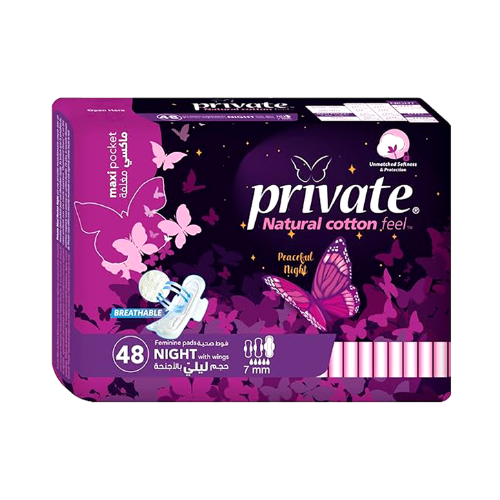 الوسوم: 48 فوطة, Breathable, Maxi Pocket, Natural Cotton feel, Peaceful Night, Private, برايفت, عبوة عملاقة, فوط صحية, فوط ليلية, قابلة للتنفس, ماكسي بوكيت, ملمس قطن