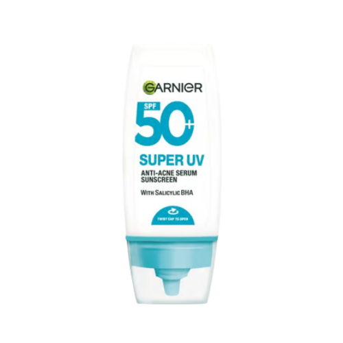 احمِ بشرتكِ من الشمس وعالجي الحبوب في الوقت نفسه! واقي شمس Garnier Super UV Anti-Acne Serum Sunscreen هو واقي شمسي ثوري يوفر حماية قصوى SPF 50+، ومصمم خصيصاً للبشرة المعرضة لحب الشباب. بتركيبته التي تشبه السيروم، يضمن لكِ هذا المنتج درعاً غير مرئي ضد أشعة الشمس الضارة، بالإضافة إلى تنقية البشرة بفضل المكونات النشطة.