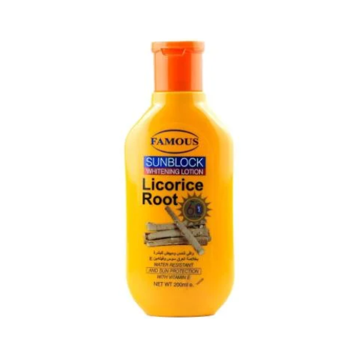 الوسوم: Famous, Licorice Root, SPF 60, Sunblock, Whitening Lotion, عرق السوس, فيتامين E, فيموس, لوشن تبيض, مقاوم للماء, واقي شمس