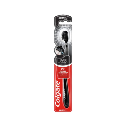 الوسوم: 360 درجة, Aktivkohle, Charcoal, Colgate, Medium, إزالة البكتيريا, تنظيف عميق, فحم, فرشاة أسنان سوداء, كولجيت, متوسطة