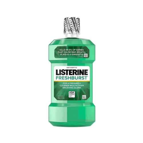 جرّب اندفاع الانتعاش مع غسول فم Listerine Freshburst المطهر. هذا الغسول القوي يقتل 99.9% من الجراثيم التي تسبب رائحة الفم الكريهة، البلاك، والتهاب اللثة (Gingivitis). إنه يوفر نظافة أعمق وأكثر انتعاشاً من التفريش وحده (اعتراف ADA)، مما يضمن لك حماية صحية شاملة ونفساً نقياً وواثقاً.